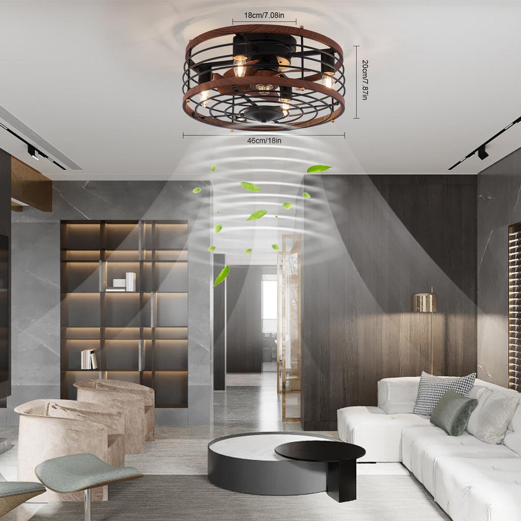 Remote Control Ceiling Fan with Light, 6-Speed Quiet Reversible Motor, Retro Industrial Flush Mount for Bedroom Living Room