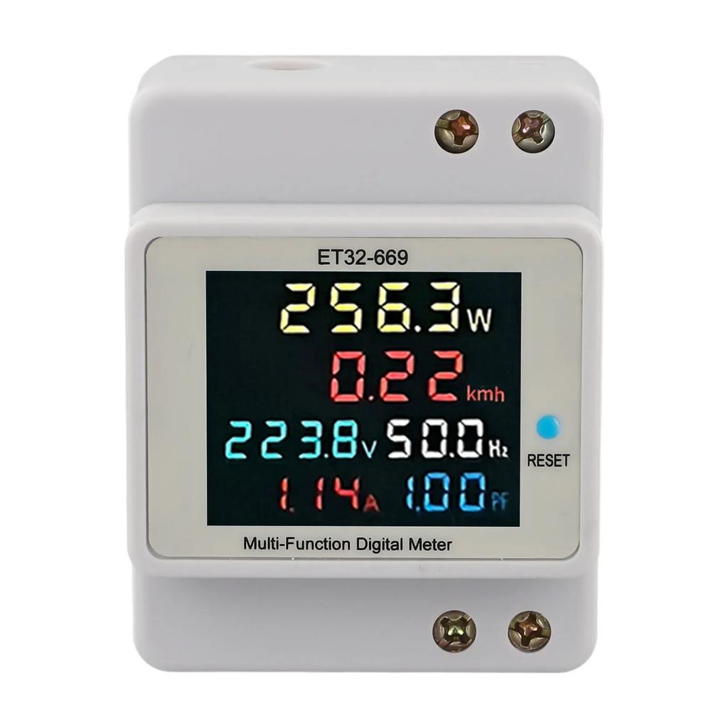 220V 100A DIN-Rail AC Power Monitor With Voltage, Current, Power, Active Power, Energy, Frequency, And Kilowatt-Hour Meter