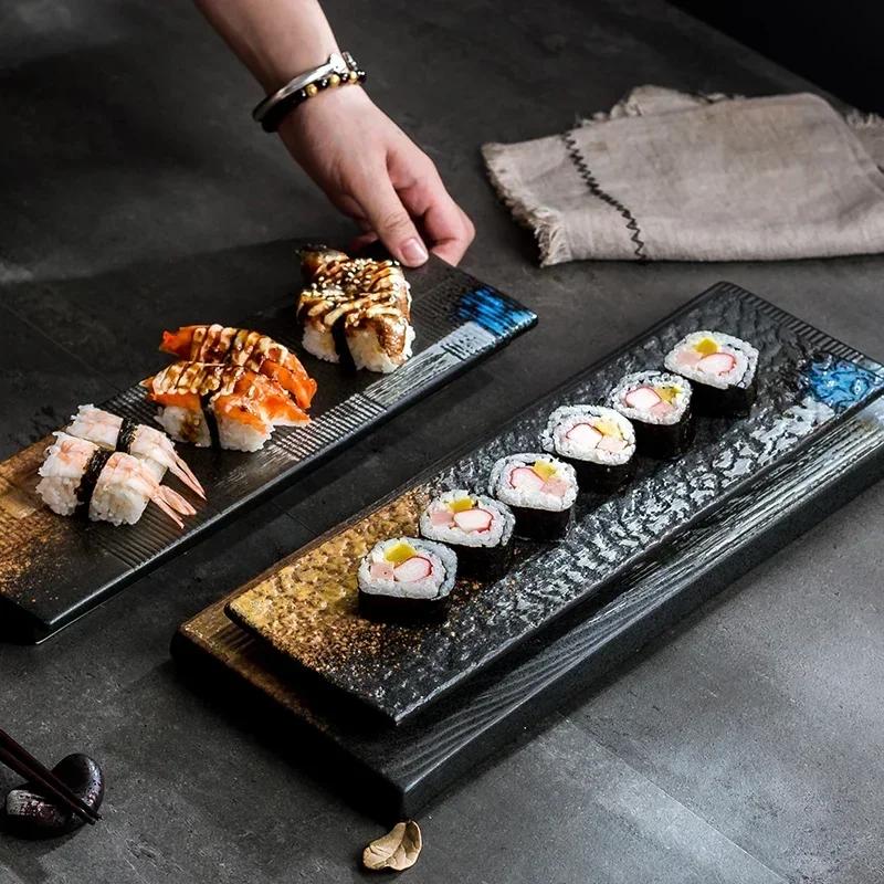 Keramikteller lang im japanischen Stil kreativ rechteckig Sushi-Teller-Set Teller Sashimi flacher Teller Restaurant gewerblich