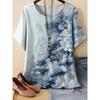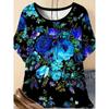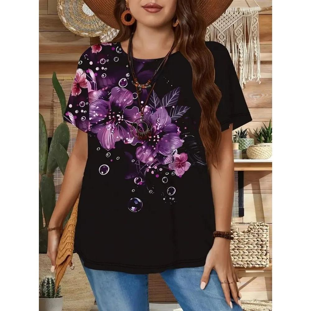 Damen Kurzarm T-Shirt Modisches Buntes Blumenmuster Bequem Locker Oversize Rundhals T-Shirt