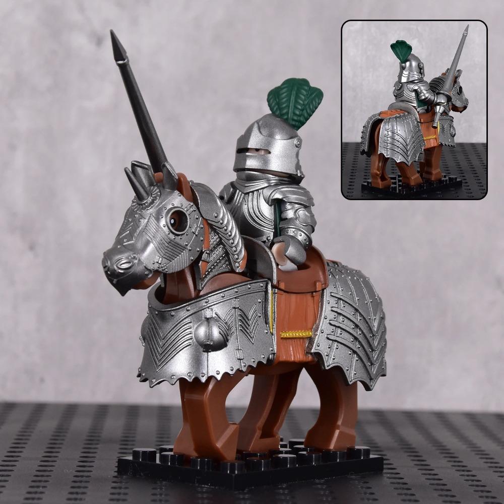 Gothic-Stil Mehrfarbig Ritter auf Kriegspferd, Detaillierte Rüstung Pferdegeschirr Baustein Spielzeug Perfekt für Mittelalterlich