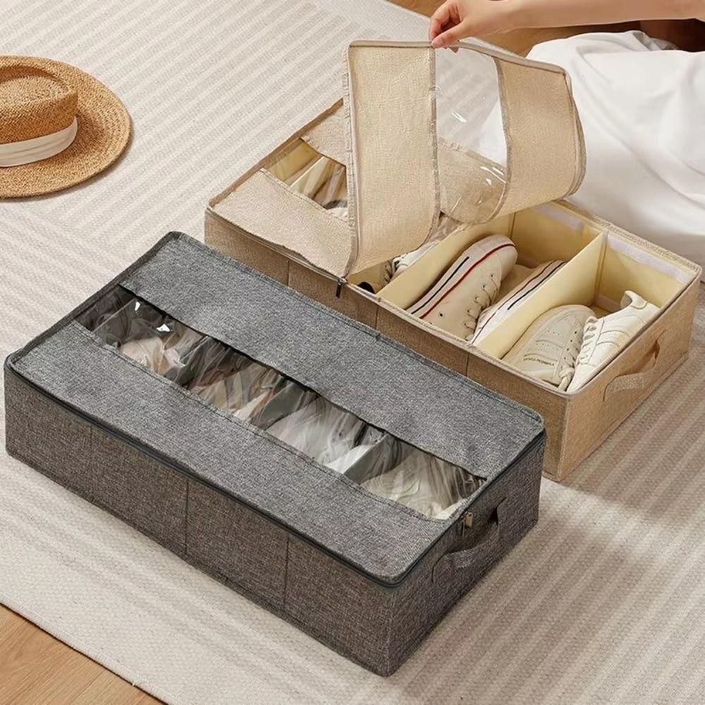 Zipper Closure Under Bed Storage Bag Moisture-proof Cotton Linen Shoe Case Bedroom