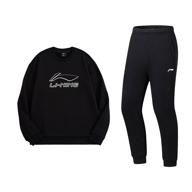 Li-Ning Casual Letter Print Crew Neck Pullover Sweatshirt And Comfortable Long Pants Set Men sets AWDUH43-1+AKLUA73-6