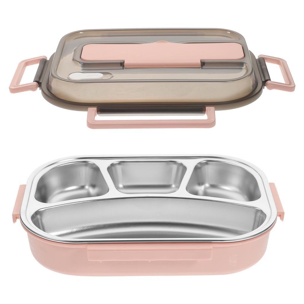 Stainless Steel Bento Box 4 Compartments Divided Lunch Box Easy Clean Buckle Design for Adults Kids Students Campers