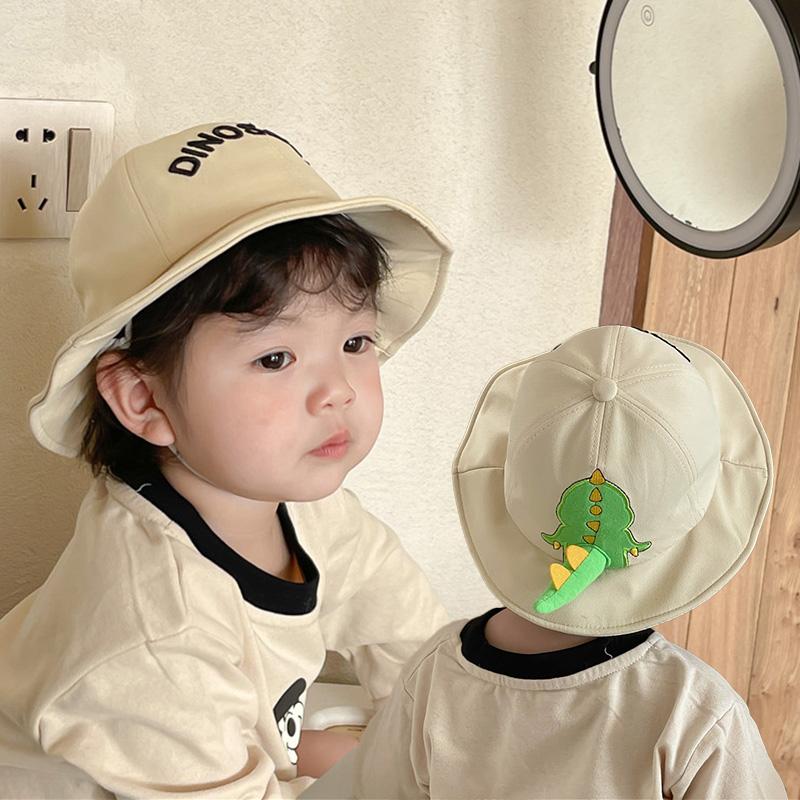 1-3 Jahre Cartoon Dinosaurier Baby Bucket Hat Sommer Sonnenhut mit breiter Krempe für Jungen und Mädchen Niedliche Tierbuchstaben Kinder Fischerkappen.