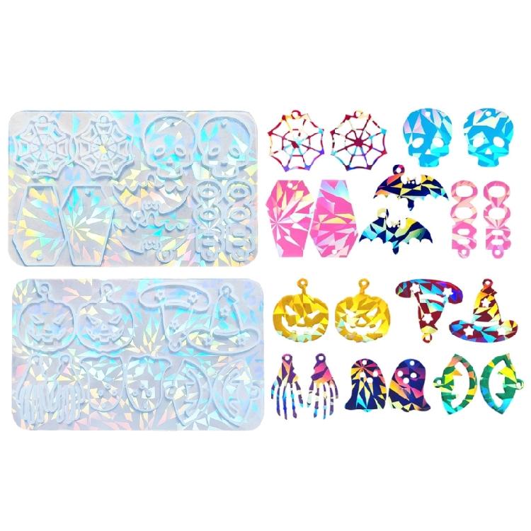 Halloween Skull Resin Molds Handmade Holographic Decorations for Earrings Keychain Hanging Pendant Jewelry Making Tools