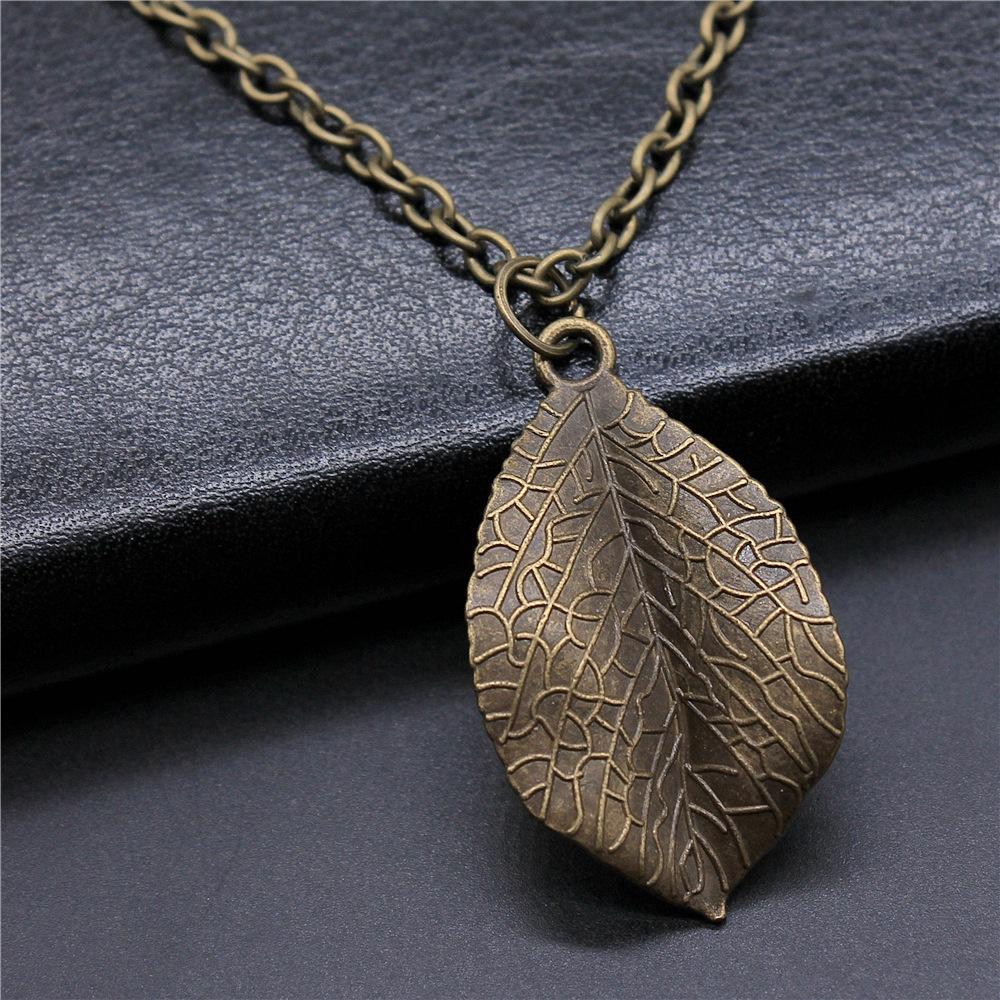 Vintage Bronze Leaf Pendant Necklace 35x20mm Long Chain Trendy Jewelry For Women Men Fashion Accessories