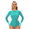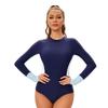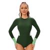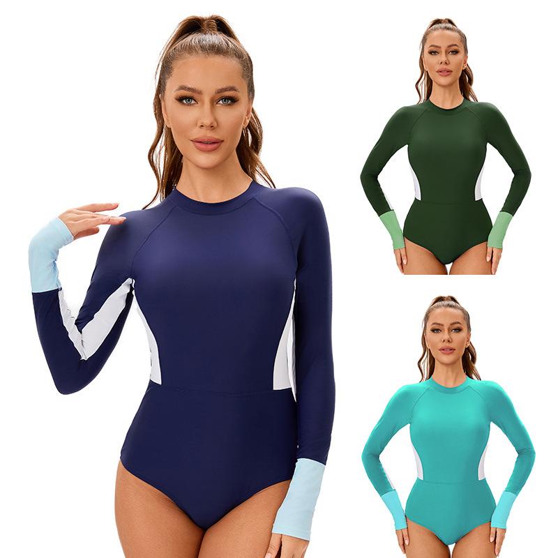 Color Block Long-sleeved Sunscreen Women's Surfer Clothing Tight Triangle Swimsuit Conservative Swimwear