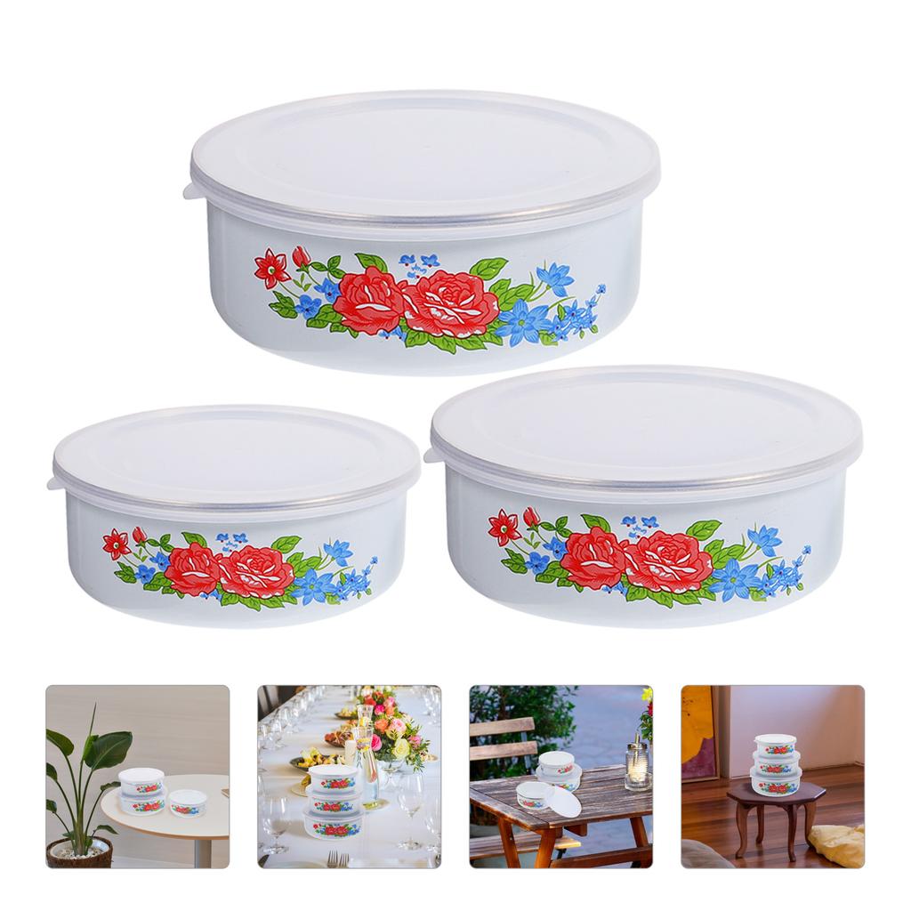 Gefrierfrisch Schüssel Set Rührschüsseln Aufbewahrungsbehälter Emaille Geschirr Lebensmittelbehälter mit Deckeln