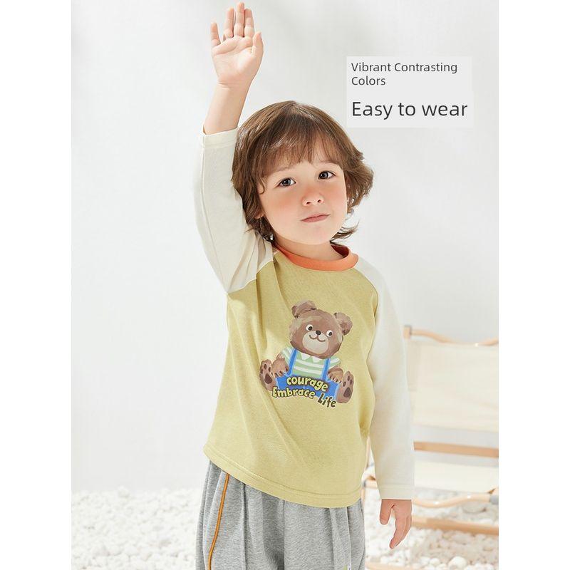Wilberu Boys and Girls Base Layer T-Shirt Long Sleeve 2024 New Color-Blocked Cartoon Toddler Tops