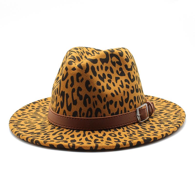 Men'S And Women'S Leopard Print Woolen Top Hat Jazz Hat Felt Hat