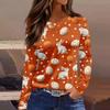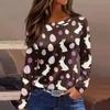 Damenmode Lässig Schlitz Saum Rundhals Langarm Lose Bedrucktes T-Shirt Damen Top
