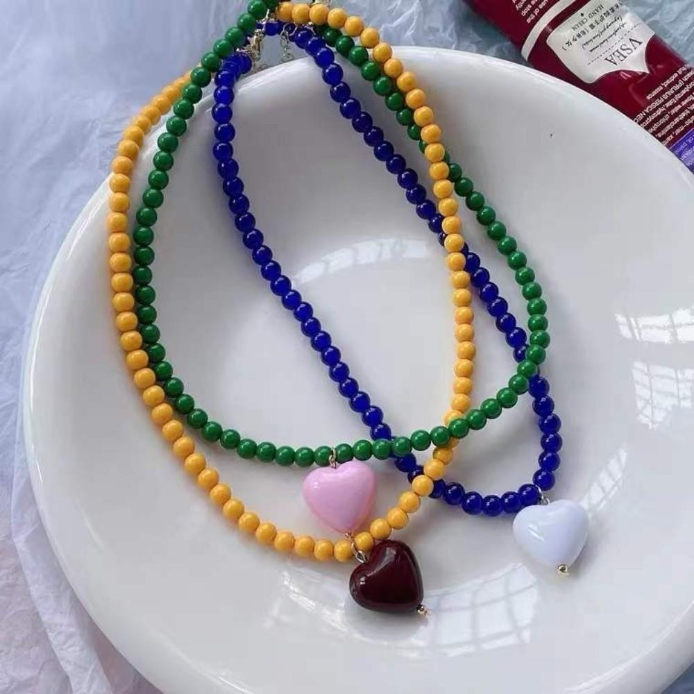 Colorful Beaded Necklace Love Heart Pendant Neck Chain Vintage Clavicle Chain