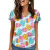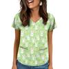 Damen V-Ausschnitt Oster-Print Kurzarm Taschen-Top mit Seitenschlitz