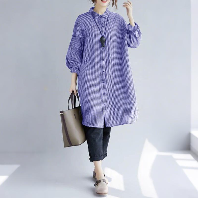 ZANZEA Damen Karoprint Freizeitbluse mit Umlegekragen, 3/4-Ärmel