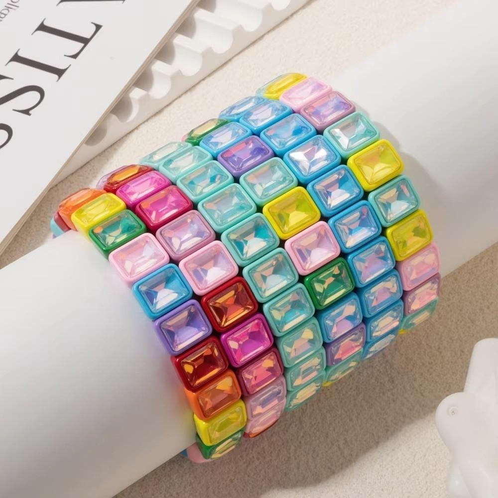 Elastic Zirconia Enamel Bangle Colorful Macaron-colored Bracelet Women Rainbow Beaded Bracelets