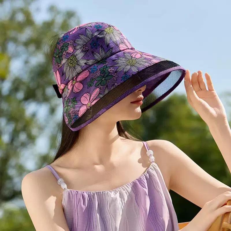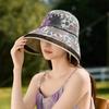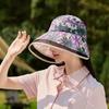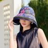 Empty Top Breathable Sun Hat Women'S Sun Protection Uv Protection Bucket Hat Mesh Yarn Ethnic Style Printing Hat Versatile