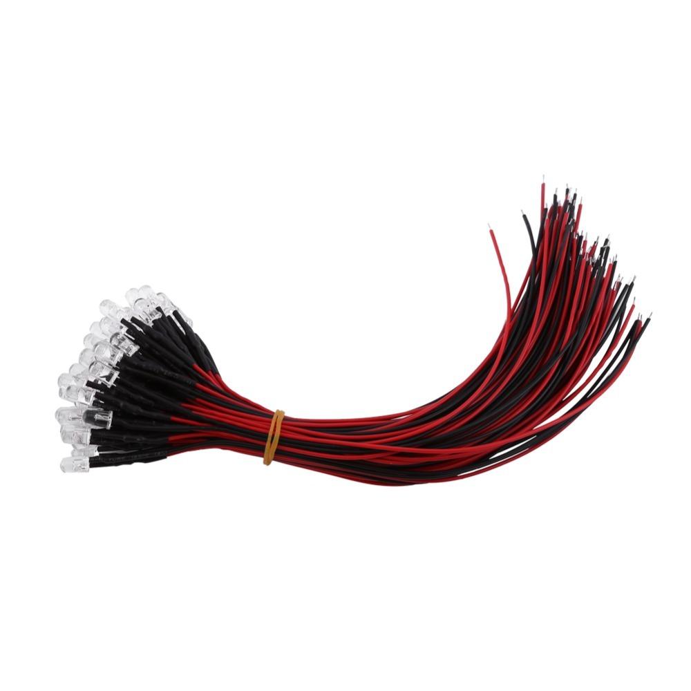 50PCS White Light LED Diodes 5mm Size Pre Wired LED Low Power Light Emitting Diodes DIY Projects