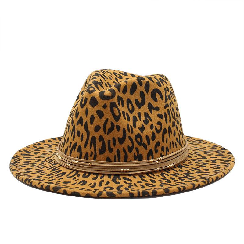 Woolen Leopard Print Top Hat, Flat-Brimmed Big Eave Hat, Couple Hat, Jazz Hat.