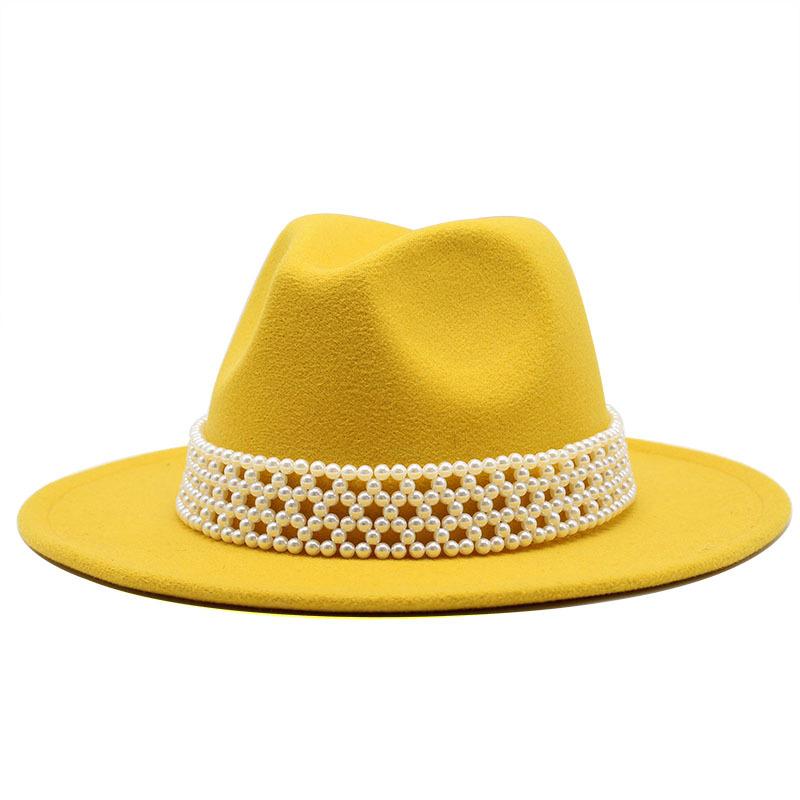 Ladies Hat Trendy British Style Versatile Jazz Hat High-End Pearl Woolen Top Hat