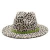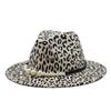 British Style Male And Female Leopard Print Jazz Woolen Hat Big Eave Hat Top Hat