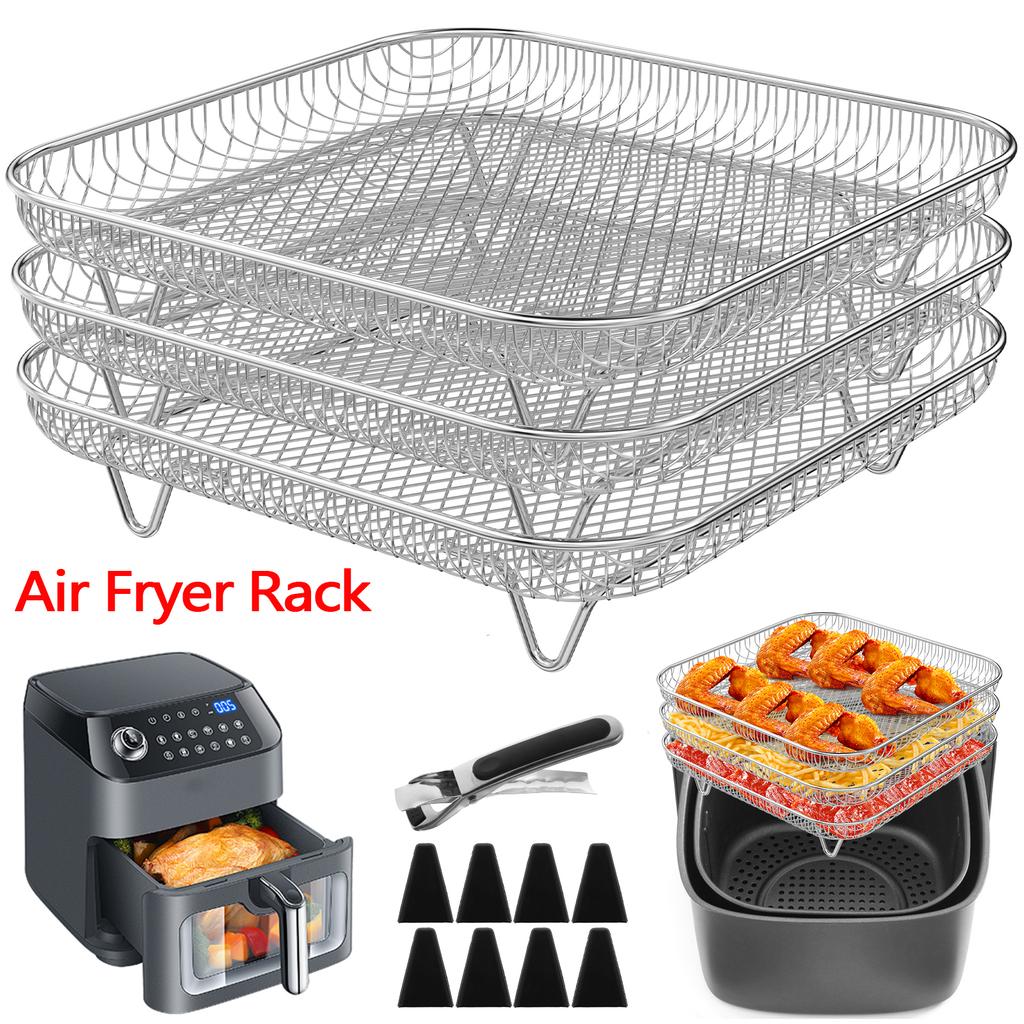 3-stufiges Heißluftfritteusen-Gestell Quadratisches Grillgestell Edelstahl Heißluftfritteusen-Ofen Grill Dampfgarer Kocher Dörrgerät-Gestell Kochwerkzeuge