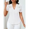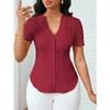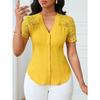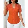 YYFS Damenmode, lässig, Sommer, Frühling, einfarbig, bedruckt, kurzärmelig, V-Ausschnitt, Blusen und Hemden