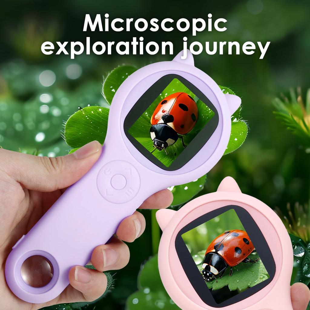 Handlupe mit 2 Zoll IPS-Bildschirm 500X Digitalmikroskop USB-wiederaufladbar Tragbar Kinder Pädagogische Wissenschaftsspielzeuge