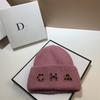 Chain Letter Cha Simple Wool Hat Winter Warm Rabbit Hair Double Fold Knitted Hat Outdoor Ear Protection