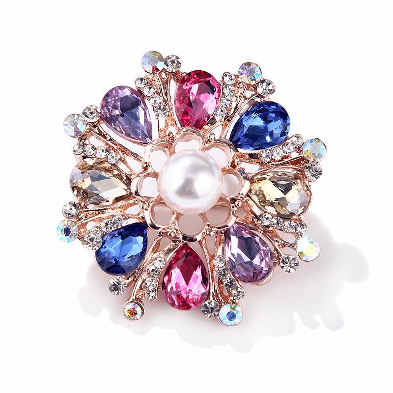Fashion Shiny Colourful Crystal Pearl Alloy Brooch Pin Women's Clothing Accessories Exquisite Hypoallergenic Luxury Enamel Brooch Long-Lasting Color