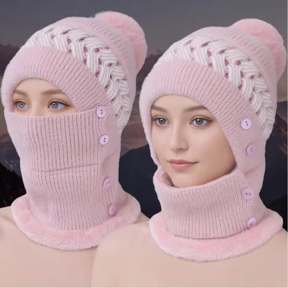 Neuer Stil Damen Bommel Wintermützen Plüsch Pelzgefüttert Warm Halten Wintermütze Damen Winddicht Kälteschutz Verdicken Sturmhaube Mütze