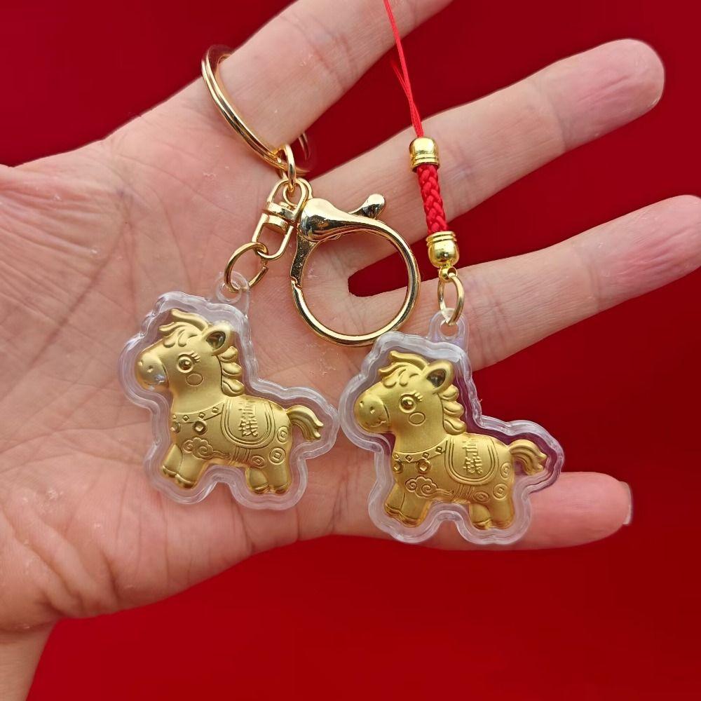 Cartoon Design Gold Horse Keychains Get Rich Mobile Chain Zodiac Horse Keychains New Year Party