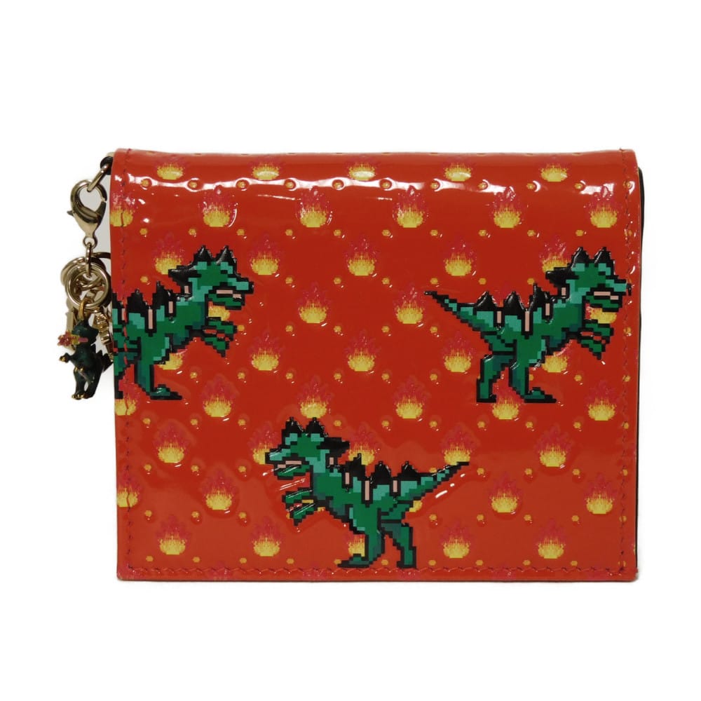 Dior Dragon & Fire Compact Wallet wallet Patent Embossed Multicolor Logo charm Orange red unisex from Japan AUTHENTIC