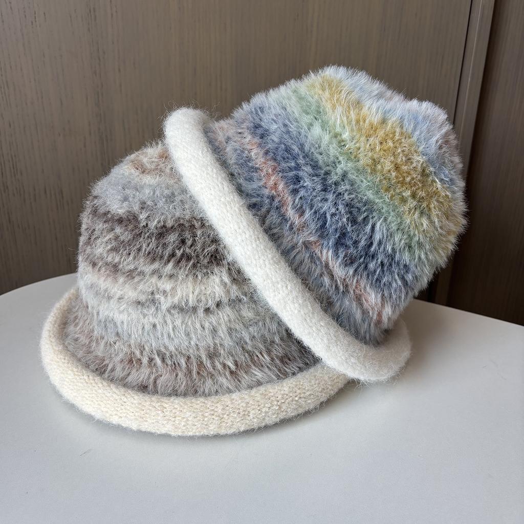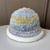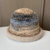 Famous Style Mixed Color Knitted Fluffy Hat Thickened Crimped Bucket Hat Women'S Warm Ear Protection Washbasin Hat
