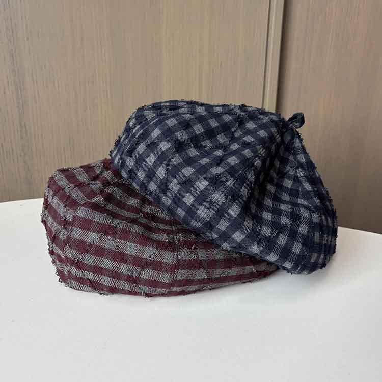 Retro Literary And Artistic Plaid Beret Women'S Versatile Face Small Octagonal Hat Temperament Painter Hat Pumpkin Hat
