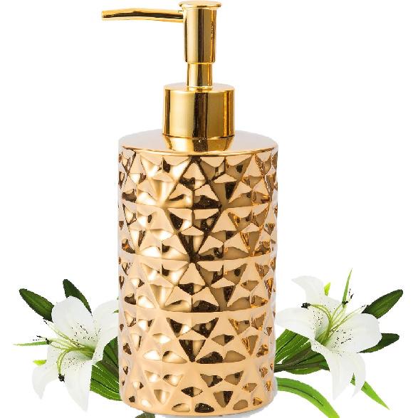 Gold Bathroom Countertop Soap Dispensers,Luxury 12 oz Refillable Soap Dispenser Bathroom,Brushed Gold Ceramic Hand Lotion Dispenser Soap Dispenser