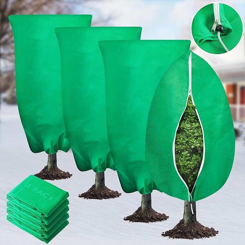4 Pack Plant Covers Freeze Protection, 31.5" x 47.3" Large Frost Cloths Blankets with Zipper Drawstring, Shrub Jackets Tree Covers for Winter Outdoor
