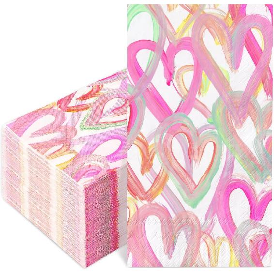 100Pcs Valentine's Day Paper Guest Napkin Colorful Heart Bathroom Napkin Decorative Disposable Hand Towel Napkin For Home Party Supplies