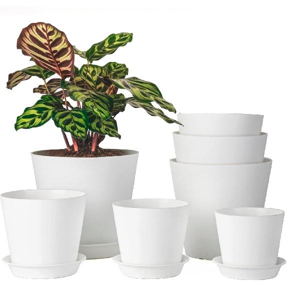 LaDoVita 7 Pack Plastic Plant Pots Indoor, 7/6.5/6/5.5/5/4.5/4 Inch Modern Planters for Plants, Flower Pots with Drainage Holes and Trays, White