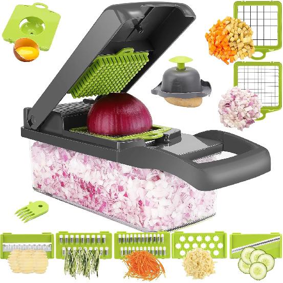 Vegetable Chopper - Time-and Labor-Saving Food - Pro Onion Cutter and Dicers, 12 in 1 Multifunctional Veggie Chopper, Container for Salad Potato