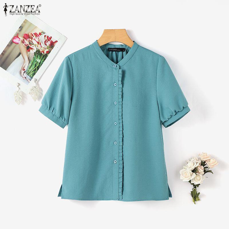 ZANZEA Damen Freizeit Rundhals Einfarbig Kurzarm Bluse