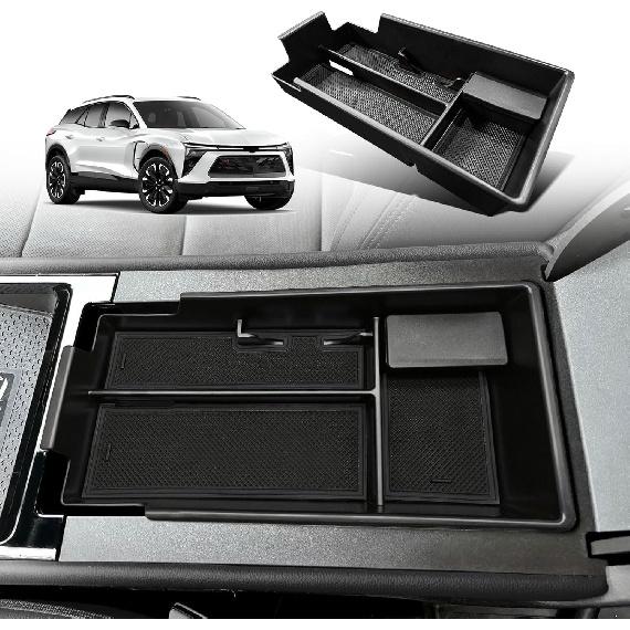 BestEvMod Center Console Organizer Tray Compatible with Chevy Blazer EV 2023 2024 Interior Accessories Armrest Storage Box ABS Material with PVC Trim