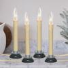SUNSGNE Set of 4 Electric Window Candles, 7 Inch Plug in Window Candle Lamps with 7 Watt C26 Bulbs, Electric Candles with Black Wood Plum Iron Base,