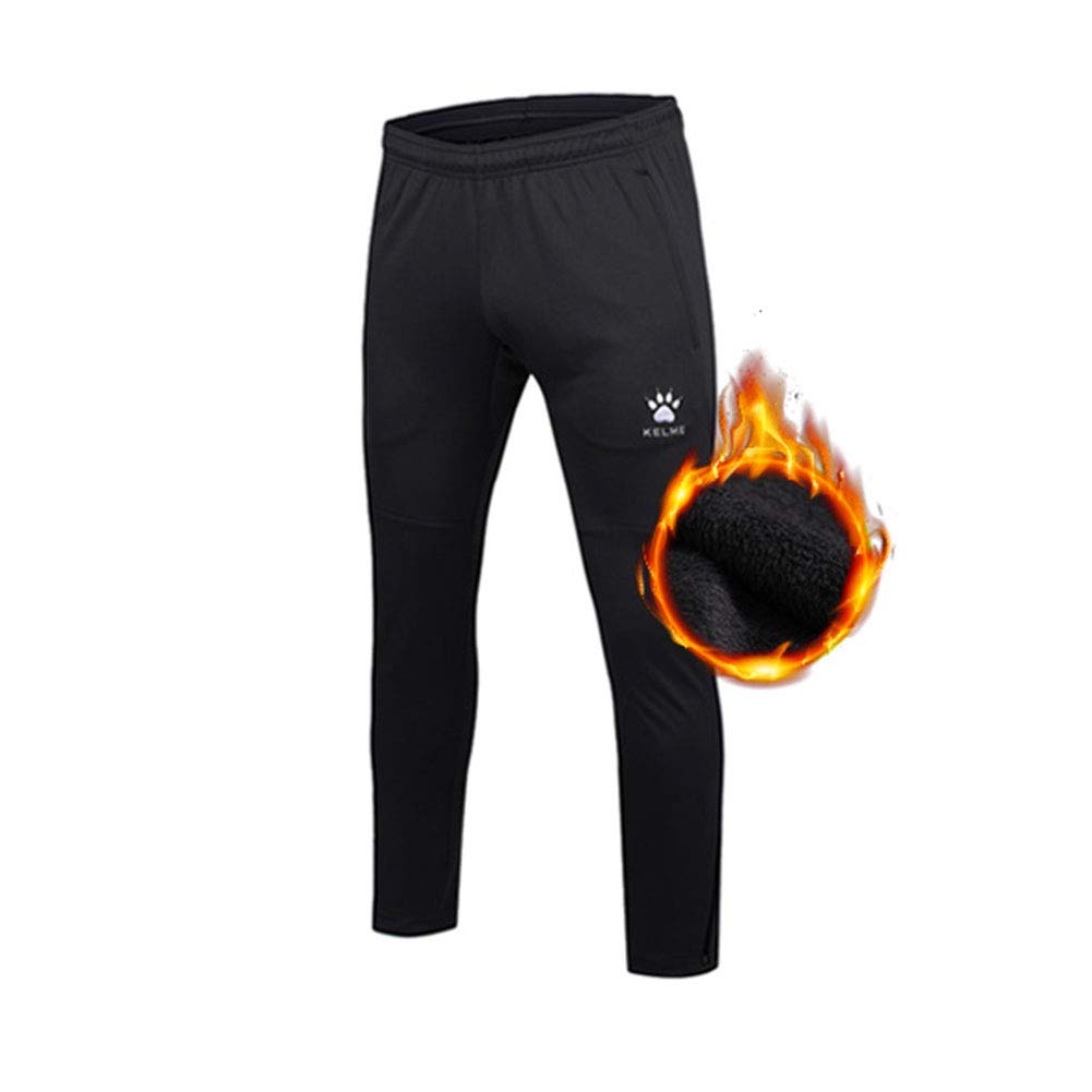 Kelme Men's Training Long Pants, Sports Sweatpants, Fitness Jogger Pants for Running (Black & Plus Velvet, Size M)