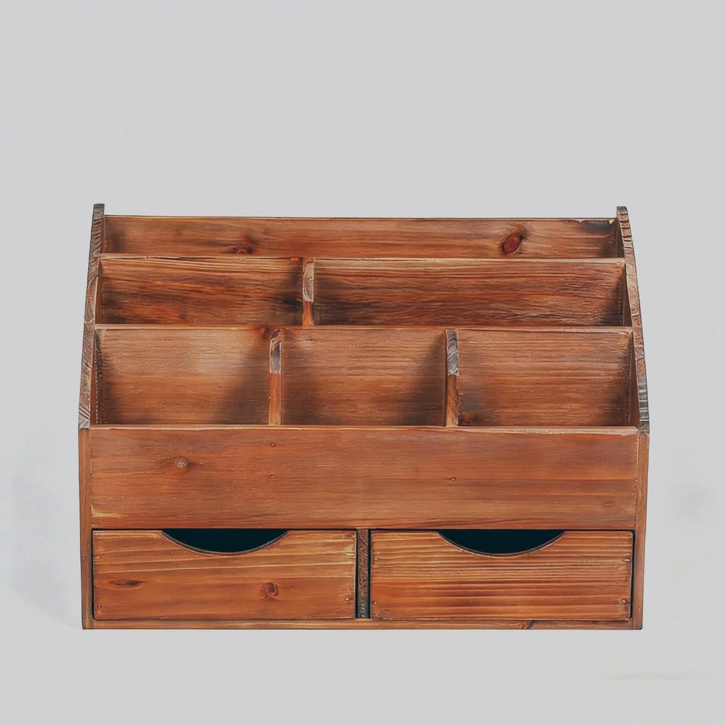 Juleduo Schreibtisch Buchständer, Bücherregal, Organizer, Kleinteileaufbewahrung, Schublade, Tischplattenaufbewahrung, Holz-Zubehörregal, Fernbedienungshalter (Braun)