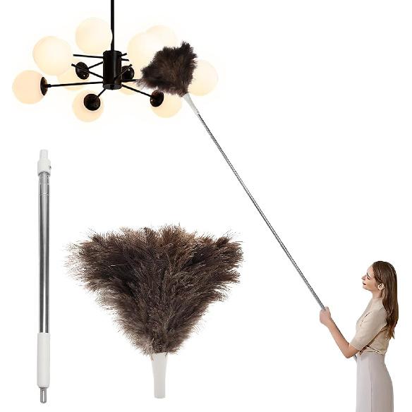 Ostrich Feather Duster Pole up to 72 Inch,Extendable Feather Duster Used for Home Cleaning Ceilings Furniture Fans