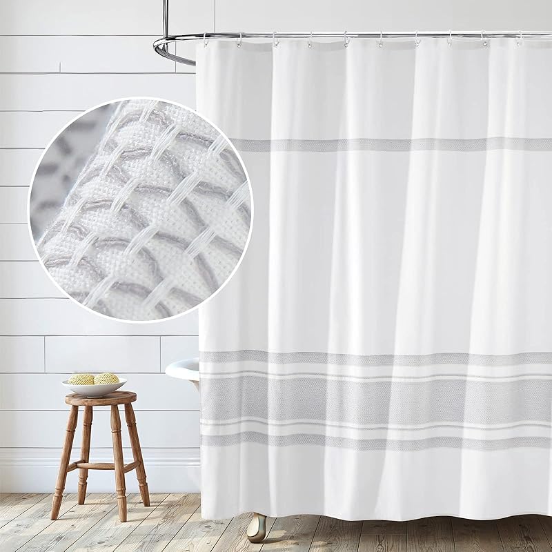 Seasonwood Shower Curtain White Gray Woven Striped 72 x 72Inches,Farmhouse Shabby Chic Striped Minimalist Bathroom Decor