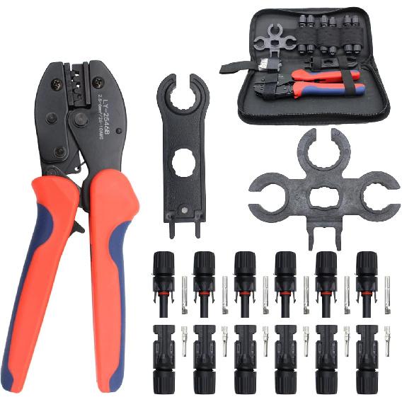MC-4 Connector Kit, Includes 6 Pairs of Solar Connectors, 2 Spanner Wrenches, and a Wire Crimper, Solar Crimper Tool Kit, Making it a Comprehensive