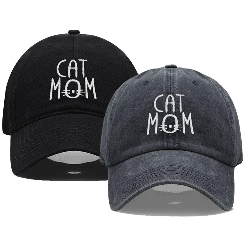 Gewaschene Baumwoll-Baseballkappe für Herren & Damen Unisex CAT MOM Stickerei Sonnenschutzhut Outdoor-Sport Großhandel & Dropshipping