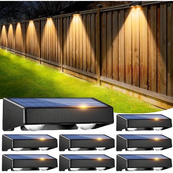 Super Bright&Solar Powered:The backyard fence lights come with 2 LEDs which adopts upgraded brightening focused reflective lens that up to 60 lumens bright, emitting a more focused and intense beam of light and illuminating a wider area